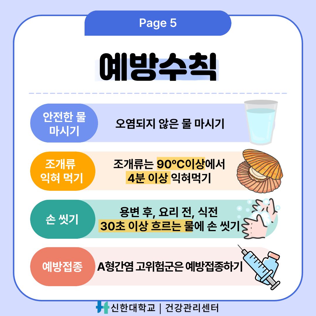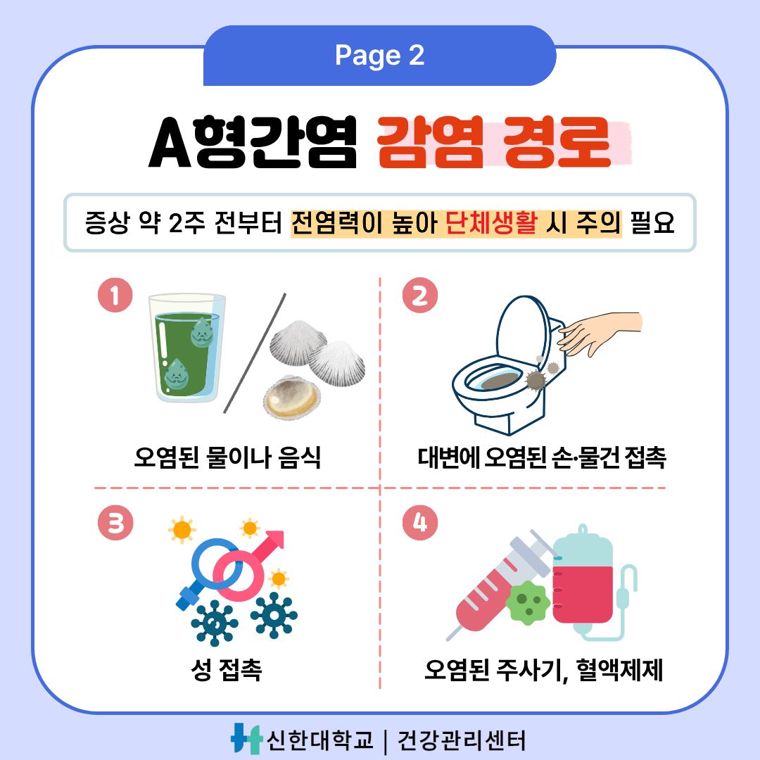 [건강관리센터] 건강정보 카드뉴스-"단체생활 시작! A형간염 예방하기"