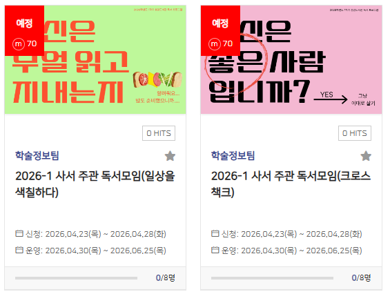■ 독서모임 운영 안내(택1/중복신청 불가)