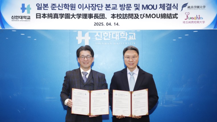 신한대학교(총장 강성종) 국제처는 2025년 4월 14일 본교 믿음관 세미나 4실에서 일본 준신학원 방문단과 한국 및 일본 간 문화, 교육, 학생 교류를 위한 교류 협력 증진을 위한 상호 업무 협약(MOU) 체결식을 가졌다.